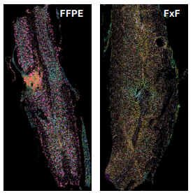 Xenium de 10x Genomics est une technologie avancée de transcriptomique spatiale basée sur l’imagerie et l’hybridation in situ séquentielle. Xenium permet l’analyse simultanée de l’expression de centaines d’ARNs sur des sections tissulaires. Cette technologie permet d’étudier et localiser des ARNs d’intérêt avec précision grâce à sa résolution spatiale subcellulaire. Xenium est adapté aux divers types de tissu tel que des tissus paraffine, tissus congelés fixés ou non fixé, et permet d’étudier plusieurs coupes tissulaires simultanément sur la même lame.